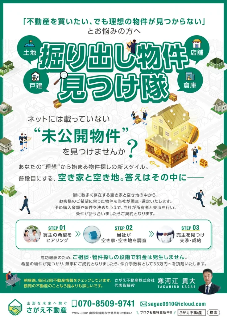 売りに出ていない空き地・空き家の購入サポートを専業で行っています。